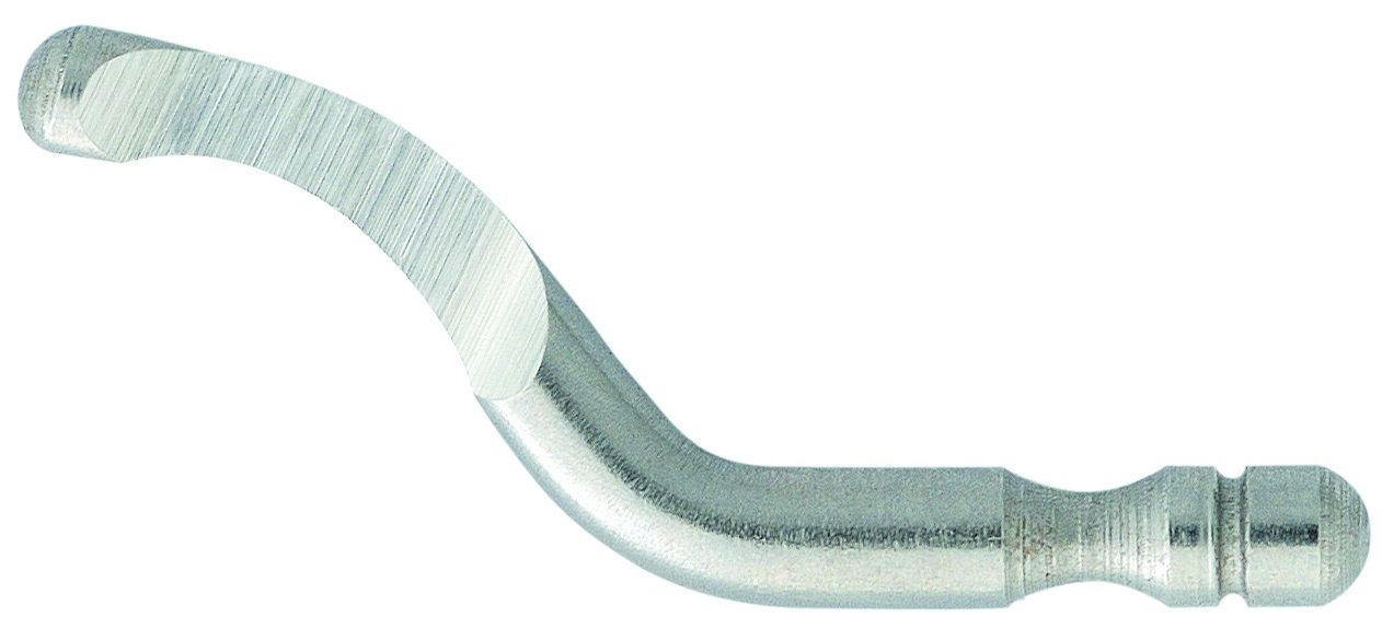 Stark gebogene Entgrater Klinge B30P, zum beidseitigen Entgraten von Bohrungen und Kanten bis zu 4 mm Stärke. TiN beschichtete Ausführung. 1 VPE = 10 Stck.