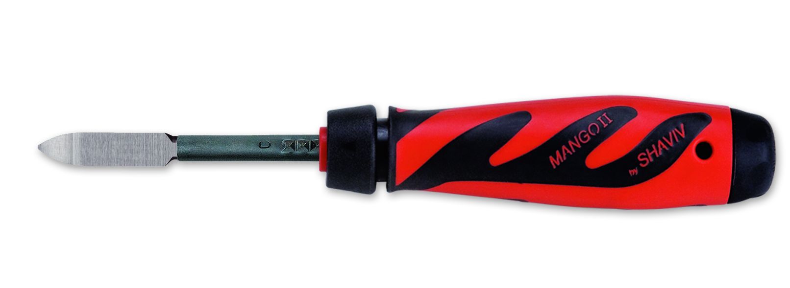 Original Shaviv Handentgrater Typ C, mit Mango Handgriff, Stahlhalter, Dreikantklinge C42 und Wechselschlüssel.