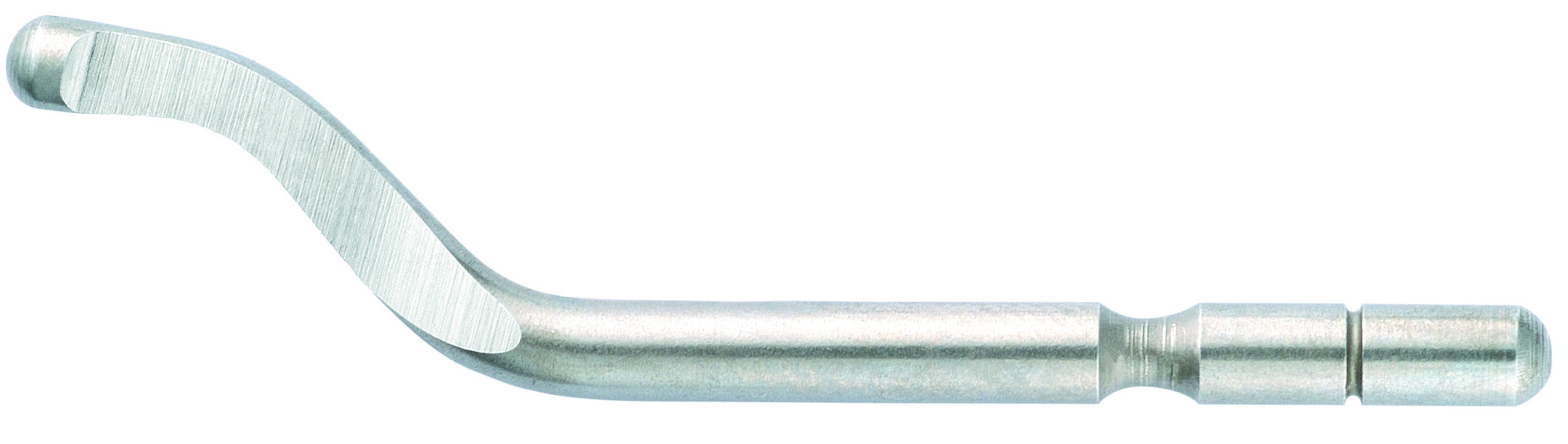 Stark gebogene Entgrater Klinge E300, zum beidseitigen Entgraten von Bohrungen und Kanten bis zu 6 mm Stärke.