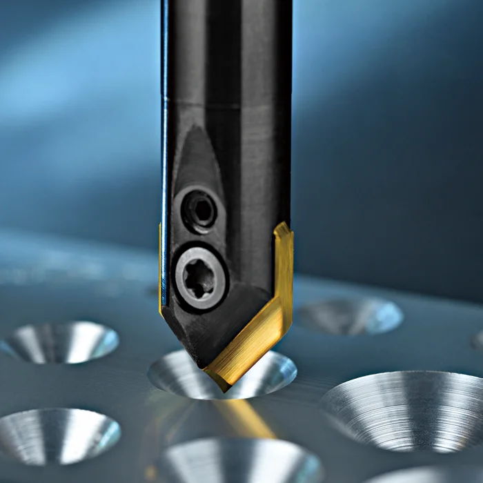 Dank des patentierten Konus‑Klemmmechanismus sitzt die Schneidplatte exakt zentriert im Werkzeughalter. Diese Konstruktion verbessert die Stabilität und ermöglicht eine Rundlaufgenauigkeit von ±0,008 mm – im stationären Einsatz nahezu exzentrizitätsfrei.